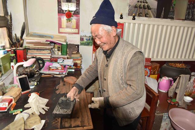 大爷的儿子今年50多岁,在北京一画室从事书画、雕刻工作,老人手里的砚台就是几十年前,儿子专门为他精心雕刻的砚台,老人非常喜欢毛笔书法,几十年从未间断书写,蔺大爷空闲时间,练练书法,看看书,自乐其乐,他说“现在生活越来越好,人的物质丰富了,精神还要充实。”