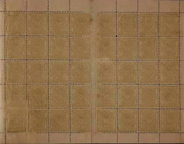 第一期光齿小龙伍分银新票跨格全张四十枚,带完整纸边,背有贴纸防止部分齿孔分开,整体色泽鲜艳,非常珍罕。第一期小龙邮票为12.5度齿孔,为最初期印刷,印版完好无破损,全张相当罕见。
