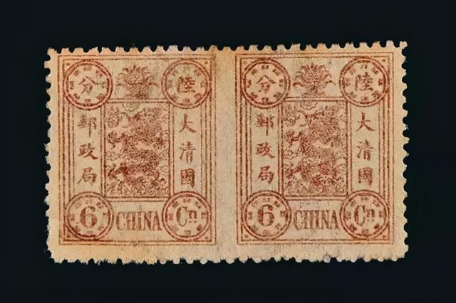 ▌1894年 初版慈寿陆分银新票横双连,中缝漏齿变异
