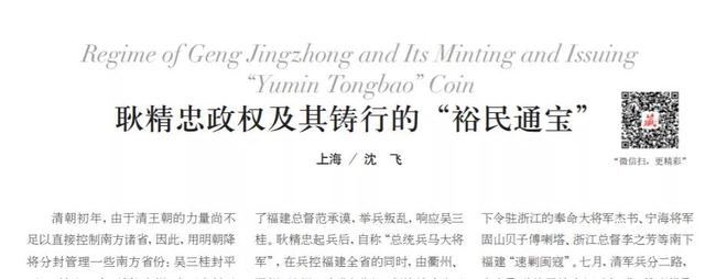 耿精忠政权及其铸行的“裕民通宝”