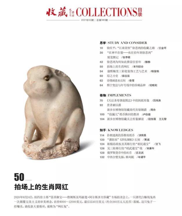 2020年九月,纽约佳士得专场拍卖会上,一只唐代白釉残兔估价8000~12000美元,最后以40万美元成交,其造型讨喜灵动,一时间收获大量粉丝,被称为“网红兔”。