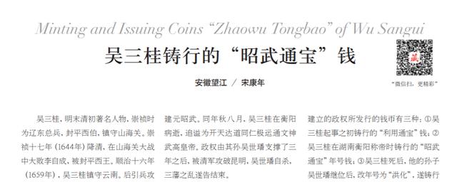 吴三桂铸行的“昭武通宝”钱