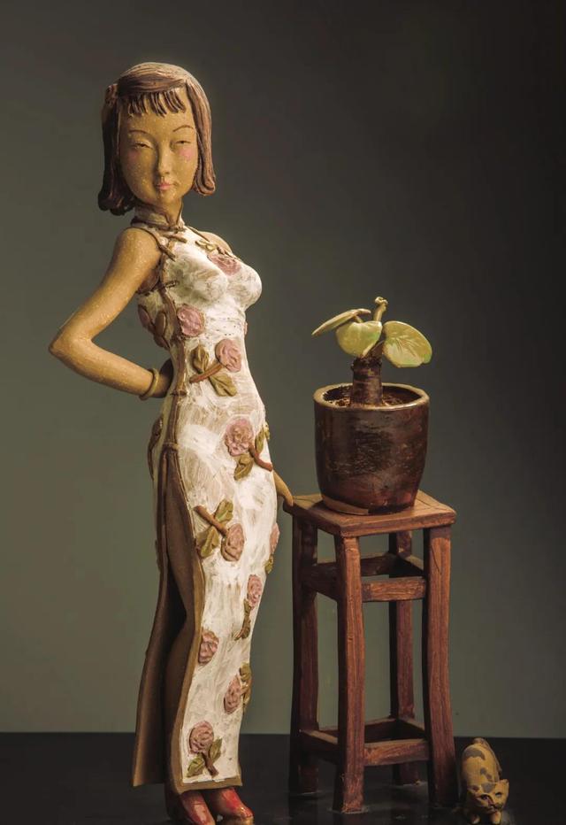 一般人都会以为紫砂是用来制壶的,我过去对紫砂也一直是这么个印象。是周刚令我耳目一新,他将紫砂这一特殊的泥材用于人物雕塑创作,让它带着原有的温度焕发出了异样的神采。在南艺的专业学习经历,让周刚有了比较扎实的专业基础,尤其在人物造型方面,练就了实实在在的能力,那是一种干活的时候出手便拿得动、拿得起、拿得住且舞得开的一股力量,是一种本钱。