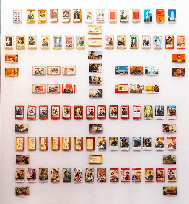 踏入雷锋文献收藏实物展厅,首先映入眼帘的是100张雷锋主题卡,每张各不相同。实物展内容主要为杨浦区收藏家协会副会长房冠龙先生收藏的“七个一百”珍贵藏品:100本党章、100枚中共一大纪念馆纪念章、100张雷锋主题宣传画、100张雷锋主题卡、100张雷锋主题书签、100本雷锋主题笔记本、100枚雷锋主题纪念章等。
