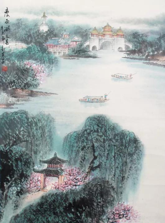 ▌扬州已故著名山水画画家郭荣之《瘦西湖之春》国画原作