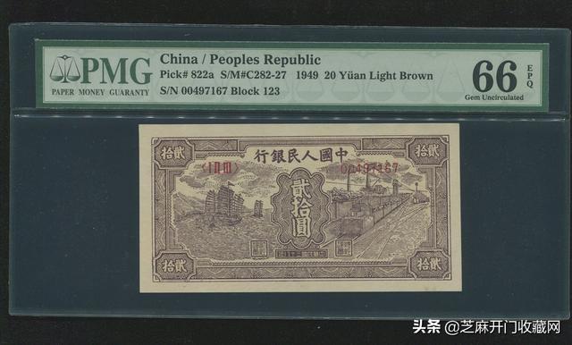 1949年第一版人民币贰拾圆帆船一枚,PMG66EPQ,估价: RMB 50000,成交价格: RMB 184000