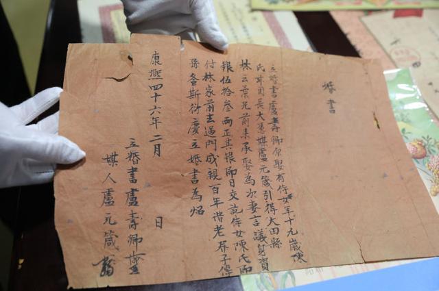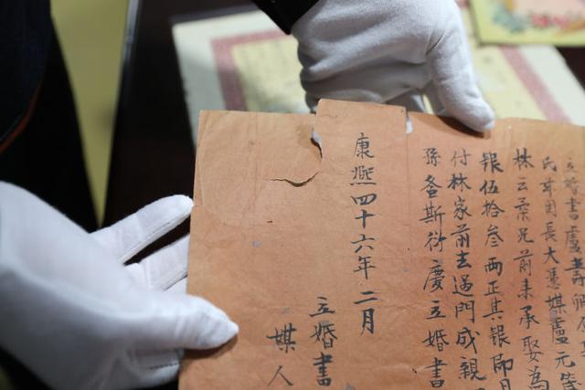 展示康熙四十六年的婚书,当时的婚书很简单。