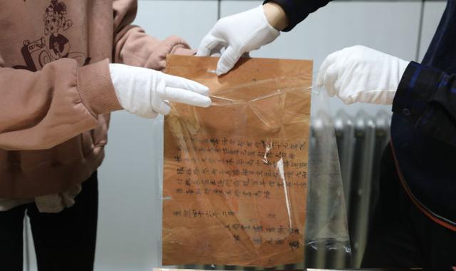 婚书的存放很讲究,放进塑料膜包裹好,每次取放都要戴着手套。