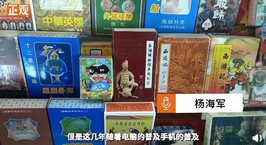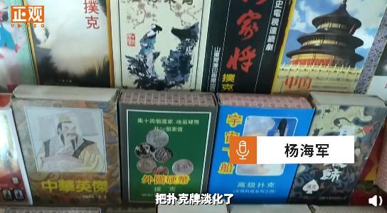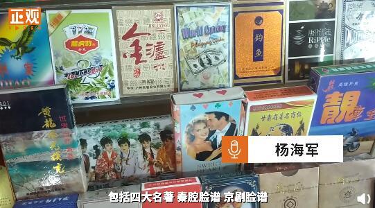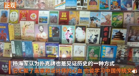 杨海军称,自己收藏扑克牌有将近20年,包括四大名著、秦腔脸谱、京剧脸谱、中国古代的甲骨文等共280多种。杨海军认为扑克牌也是见证历史的一种方式,它汇聚了画家和设计师的心血,娱乐的同时也能学习中国传统文化。
