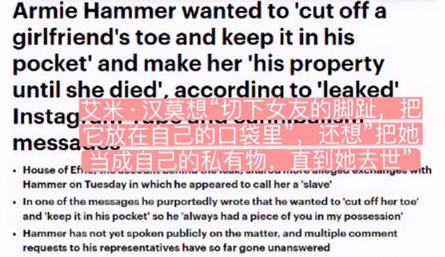 可如今,艾米·汉莫却一再被曝光这样的私生活丑闻,这不禁令人震惊且刷新三观。不过,汉莫方对此事表示否认,不知道后续会如何发展。