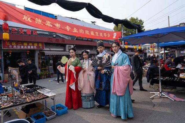首届收藏集市交流会以打造“数字化交流集会”新业态为核心,汇聚了千余户商家,涵盖钱币、瓷器、玉器、字画、杂件等多个品类,并邀请身着汉服的网红博主助阵,现场精彩纷呈。除了线下逛展互动,现场摊主和游客还能在收藏集市论坛参加“最火人气摊主”、“寻找最强捡漏王”等一系列活动,通过“线下淘宝、线上晒宝”,重塑传统文化交流形式,吸引了现场大批商家与游客参加。