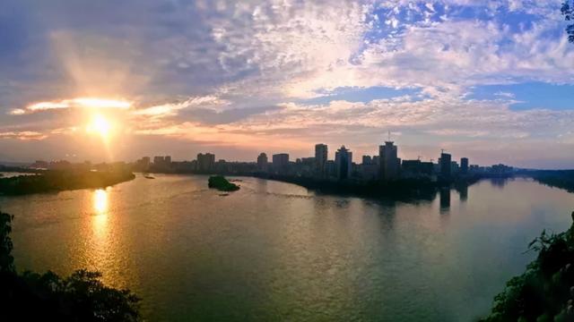 天色渐晚,景区又呈现出另一番景色。眼前是被染红的天际,是波光粼粼的三江水面,也是美好的嘉州...