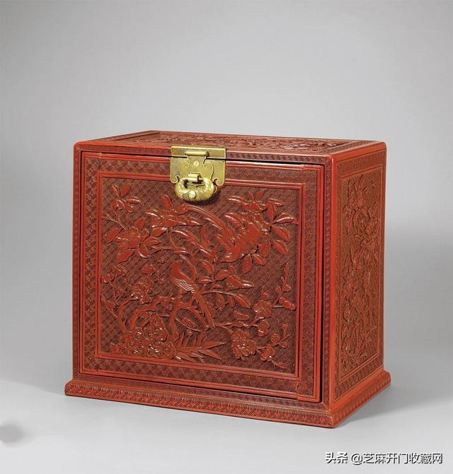 明嘉靖剔红洞石花鸟纹文具箱,尺寸:长31.5厘米;宽21厘米;高27.3厘米,成交价: RMB 1,150,000