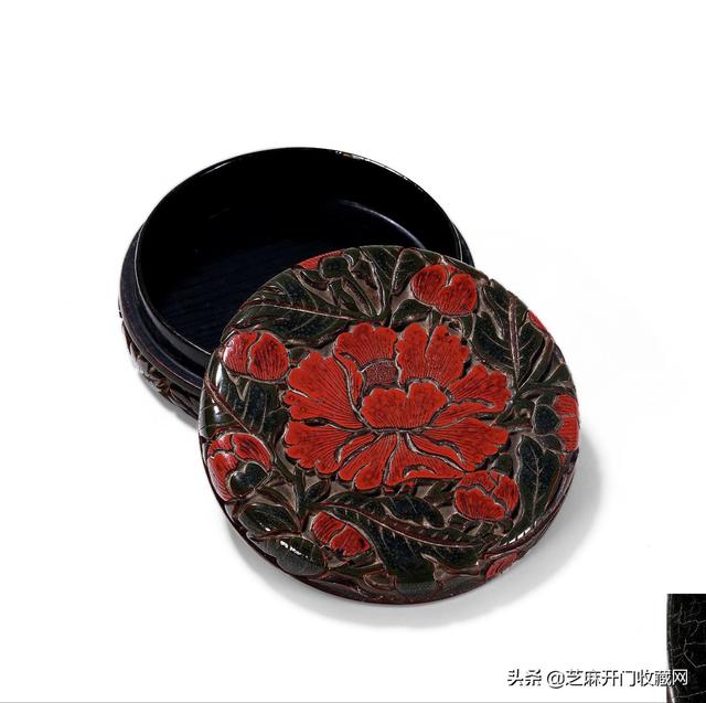 元剔彩红花绿叶牡丹香盒,尺寸:直径11.5厘米,估价:RMB 1,000,000 ~ 1,500,000,成交价: RMB 1,150,000
