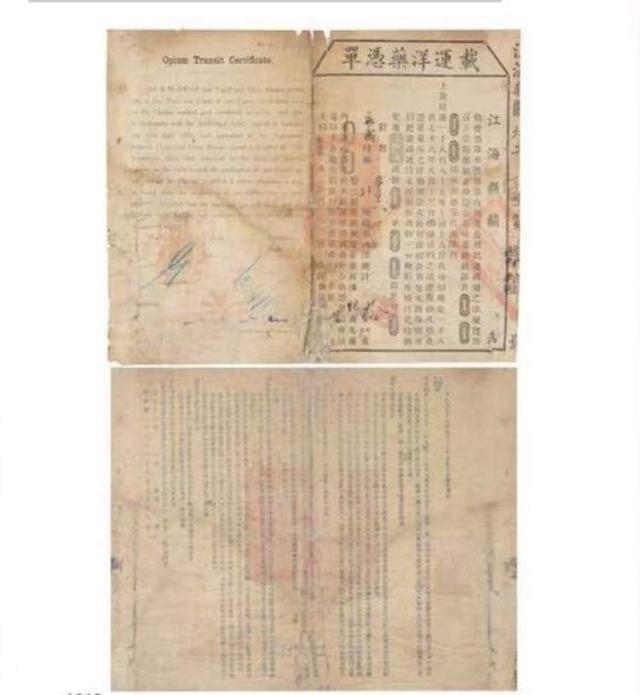 该专场中不乏非常特别的拍品。比如一张凭单见证两个不平等条约的“清光绪三十三年上海江海新关载运洋药(鸦片)中英对照凭单一张”,其背面印有1885年清政府与英国签订的烟台条约续增专条,烟台条约是英国为鸦片贸易与清政府签订的不平等条约,而江海新关是因中英南京条约上海开埠而设立的。
