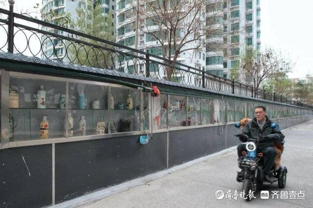 济南槐荫区安澜北路舜亿佳园小区西侧有面“网红墙”,500米长的墙上定制了玻璃橱窗,里面整齐的码放着各种各样的老物件,用草编成的蓑衣、上世纪八九十年代的电影海报、旧时的农具、斑驳的铜镜、老式门牌、几十年前的儿童玩具……来往行人驻足于此,仿佛时光倒流,回到过去。