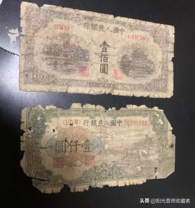 也许你会说:“这种不是更高吗?这可是1100元的面值。”这是第一版旧币,面值是未换算前的旧币制,壹千圆等于现在的一角,那张百元的顶现在一分钱。