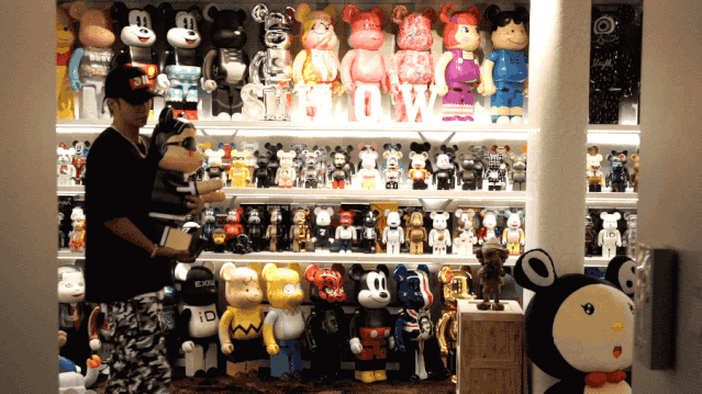 我应该是国内最早一批玩潮玩的人吧。最早是从学校毕业开始,喜欢收集手办、动漫周边,2001年日本MEDICOM公司开始生产积木熊Bearbrick,我是在2002年买了人生当中第一只Bearbrick。