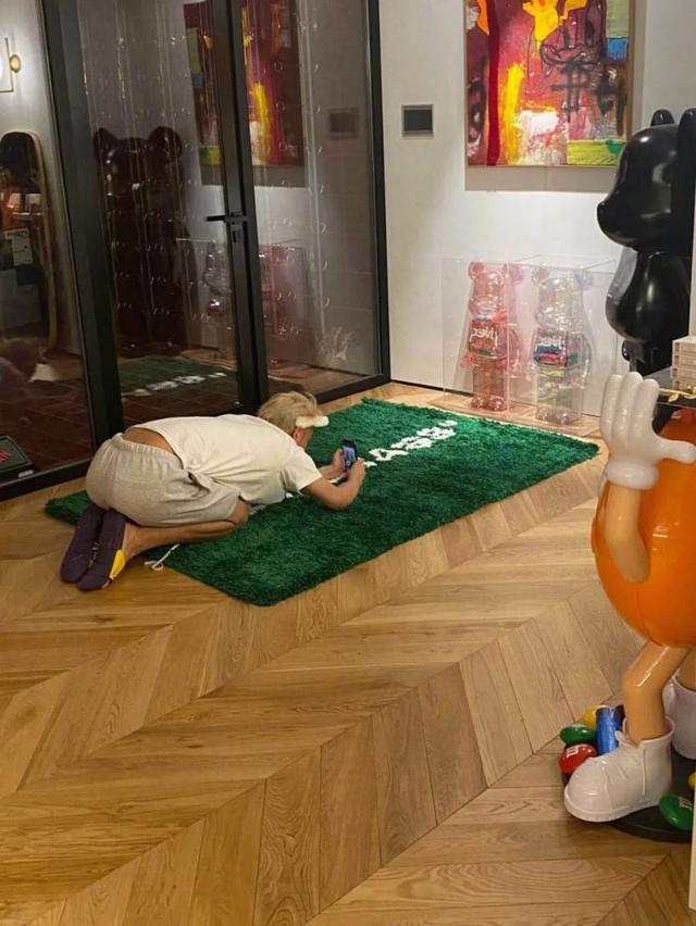 黄子韬也是出了名的Bearbrick骨灰级玩家,“卑微”的拍摄姿势已经表明了此熊有多贵重——这一对X-girl 透明款约10万元。