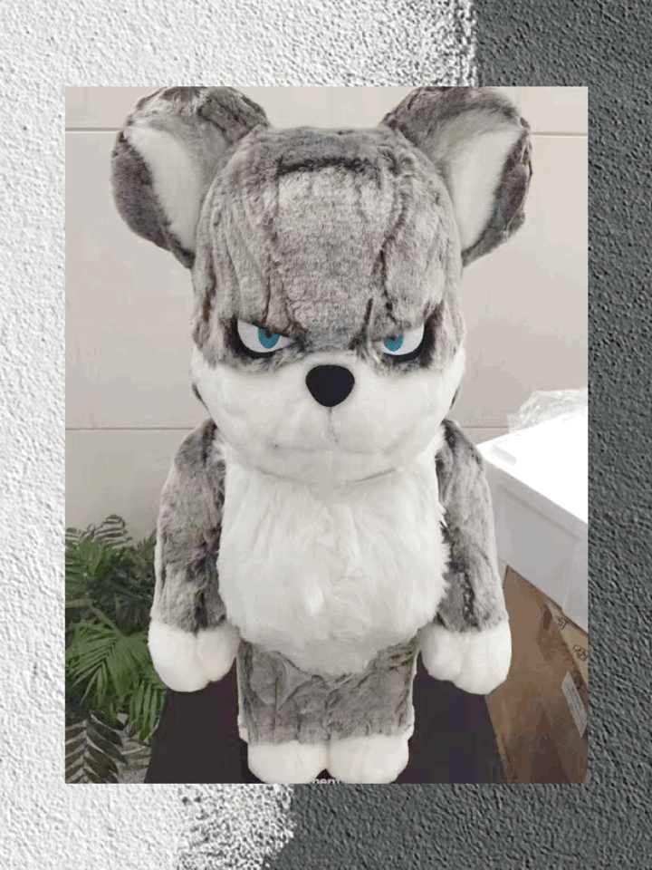 我自己比较喜欢藤原浩设计的这只狼羊。看起来眼神恶狠狠的,如果你去摘掉它毛茸茸的头套,里面会露出一只可爱的羊,这种反差感很有态度。现在这只市值价八万元,呈稳定的增值势头。