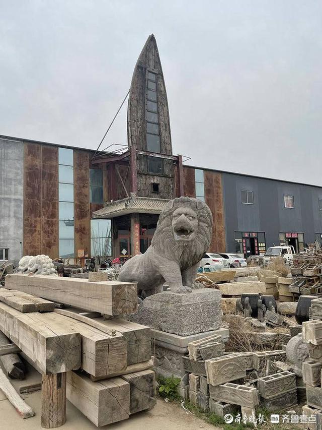 记者还走访了多个古玩收藏店,看到了古石雕刻老物件,还有近现代不同时期的缝纫机、布满灰尘的老酒瓶、国内外不同年代的各种相机展架,以及用帆船当门梁的“传统建筑工程展厅”造型。
