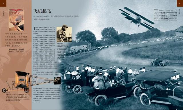 每种飞行器配有型号、技术参数与历史背景介绍,具有代表意义的飞机还有单独的跨页图,详细展示内部构造。除了各个年代的飞行器,书中还有单独的栏目,讲述飞行史上的重要人物及历史事件,诸如飞行第一人莱特兄弟、法国传奇女飞行员杰奎琳·奥丽奥尔、二战时期的王牌飞行员等等,这些先驱者的面孔仿佛穿越百年时空呈现在你的面前,栩栩如生,本书堪称“一座收藏在家的飞行历史博物馆”。