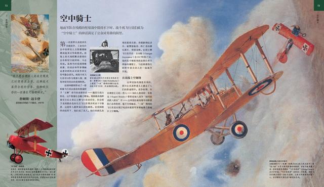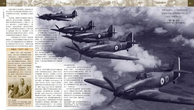 法国和德国形成了一套根据飞行员击落敌机数量授予“王牌”称号的表彰体系。在媒体的宣传下,这些王牌飞行员成了名人。他们的面孔出现在报纸头版、参演新闻纪录片、被赞誉淹没……《DK飞行器大百科》中介绍了众多“一战”“二战”时期著名的王牌飞行员,以及他们驾驶的具有出色性能的战斗机,例如下图中的阿道夫·马伦,他是第74空军中队及不列颠空战中的王牌飞行员。
