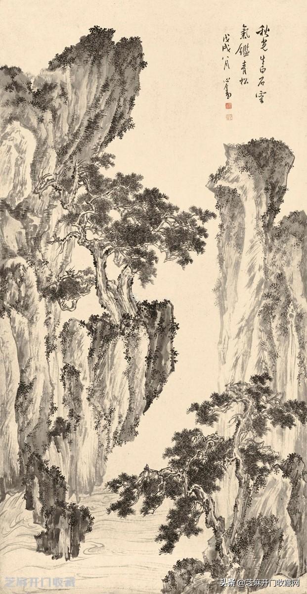 2:溥儒1958年作秋岭苍松镜框,尺寸:185.5×95.5厘米,估价:HKD 1,000,000 ~ 1,500,000,成交价: HKD 6,120,000