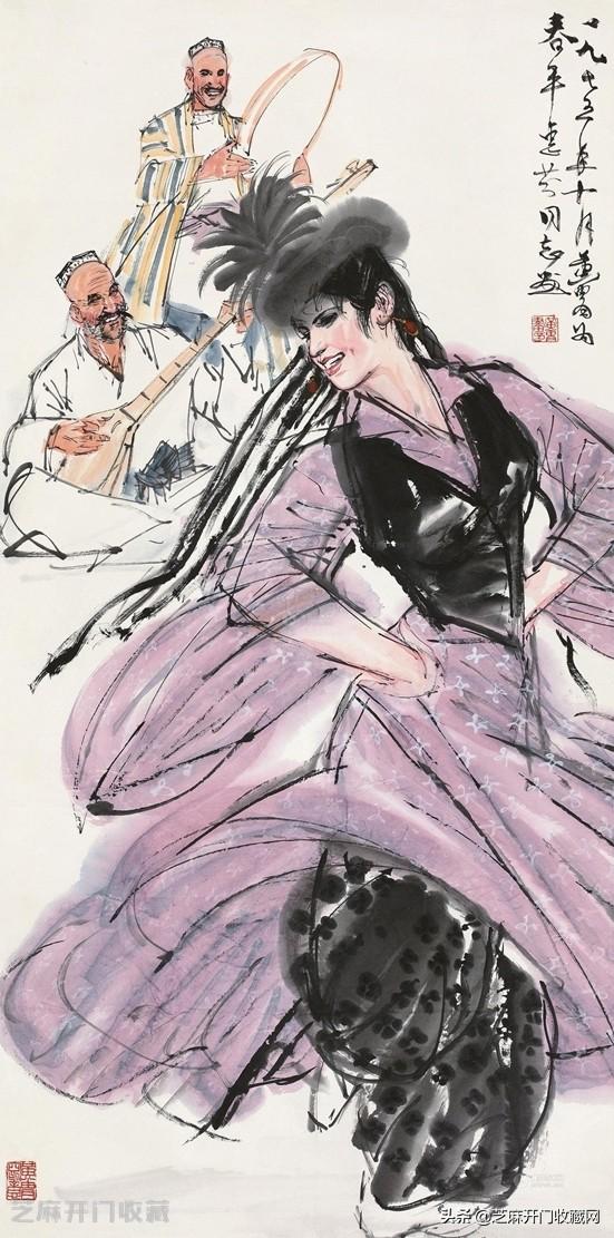 4:黄胄1975年作维族歌舞立轴,尺寸:137×68厘米,估价:RMB 6,000,000 ~ 8,000,000,成交价 RMB 7,820,000