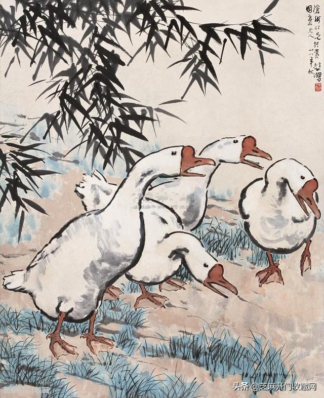 2:徐悲鸿1939年作四鹅图镜心,尺寸:101×82厘米,估价:RMB 4,500,000 ~ 5,500,000,成交价: RMB 6,720,000