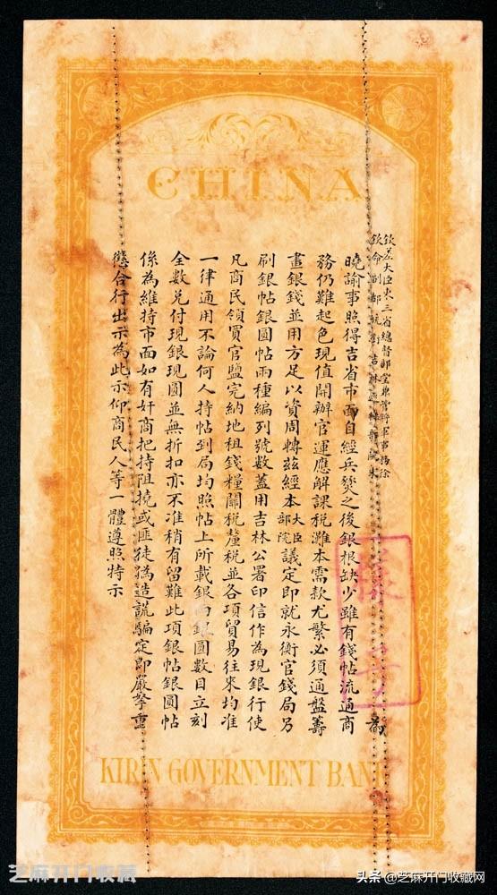 2:吉林官钱局银元票龙洋壹圆样票 九品,估价: RMB 180000,成交价格: RMB 322000