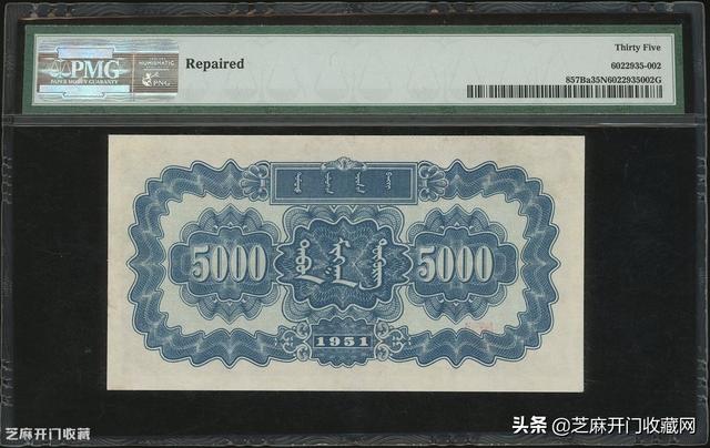 1:1950年一版钞伍仟圆蒙古包 PMG Choice VF 35 ,估价: HKD 180000 - 240000,成交价格: HKD 432000