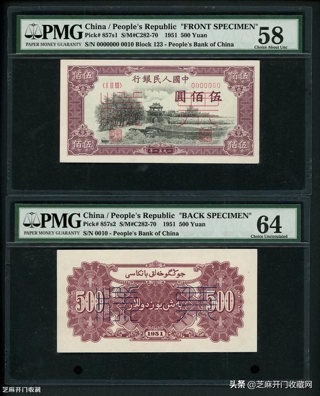 4:1948-49年中国人民银行第一版人民币500元「瞻德城」正反面样票,成交价格: HKD 348000