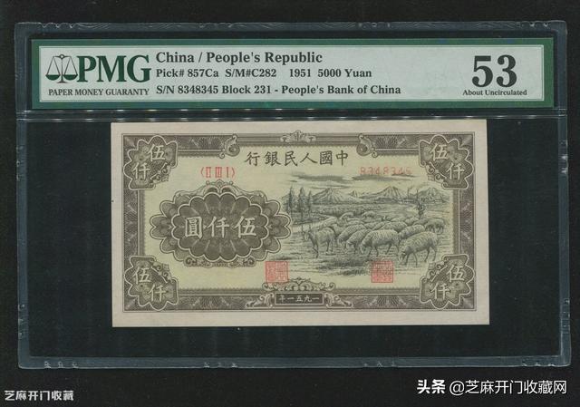 5:1949年第一版人民币伍仟圆牧羊一枚,PMG53 ,估价: RMB 50000,成交价格: RMB 138000