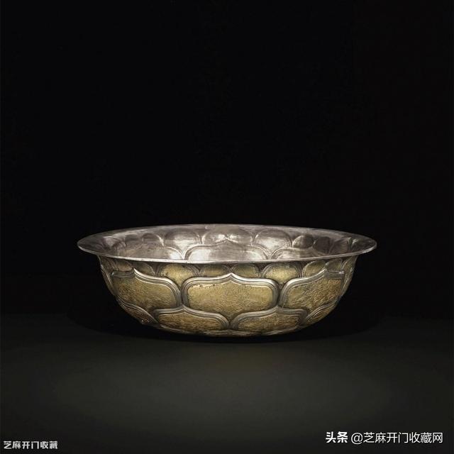 4:唐银局部鎏金花鸟纹莲瓣式盌,尺寸:直径24.5厘米;重量1052g,成交价: USD 3,495,000