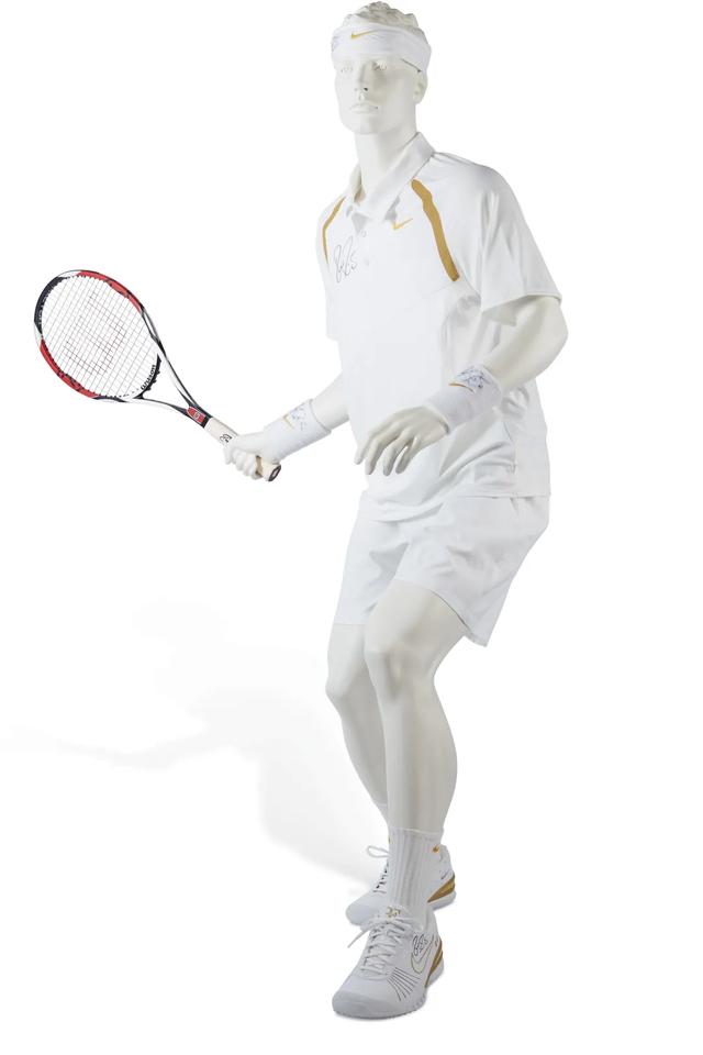 费德勒在温网夺冠时的球衣、球拍和球鞋