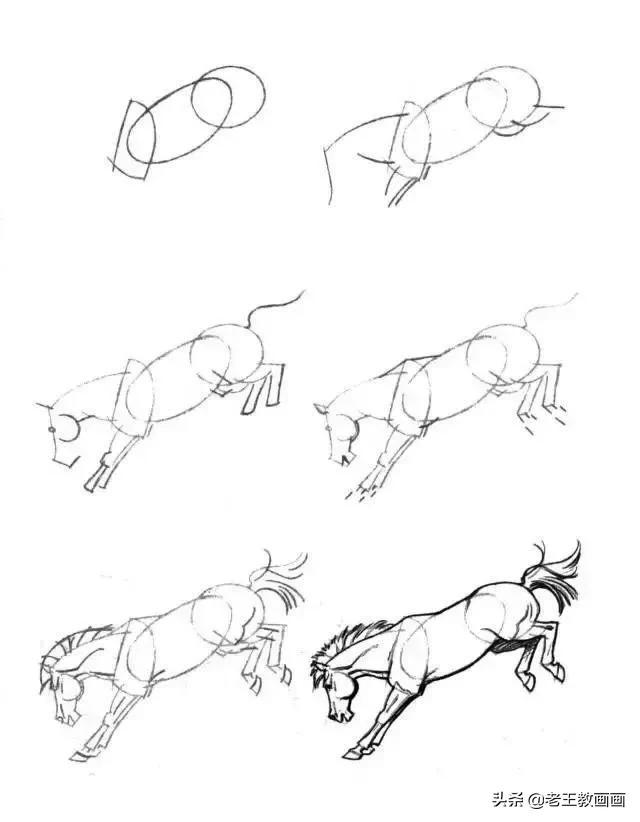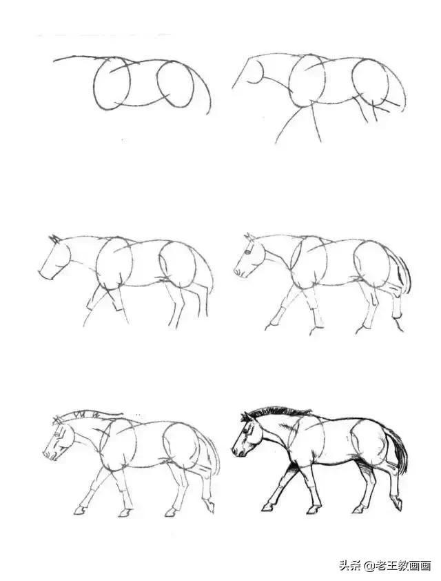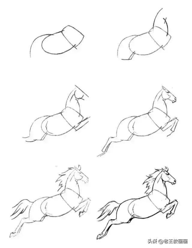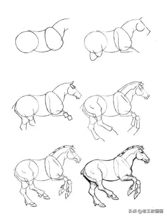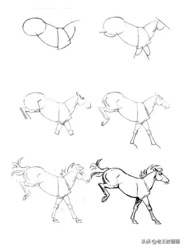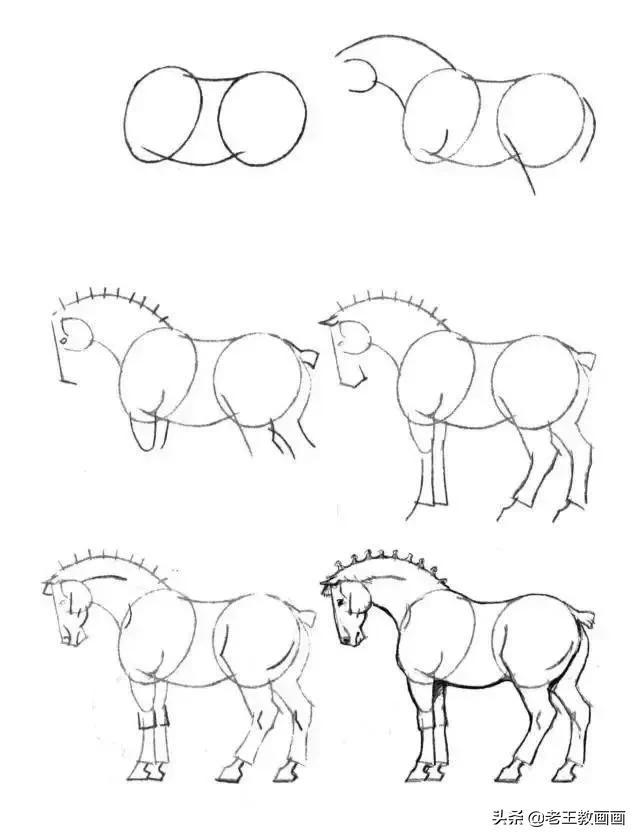 当然,也有地上的马,几个简笔画,画出马的各个形态。