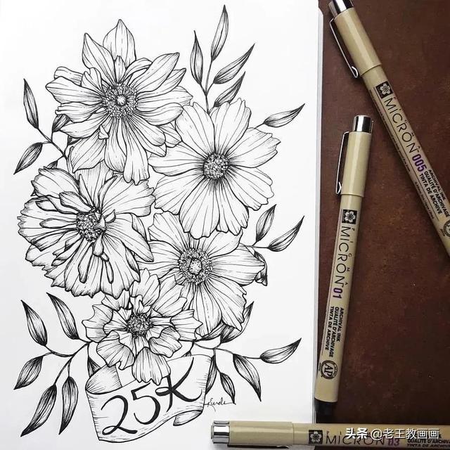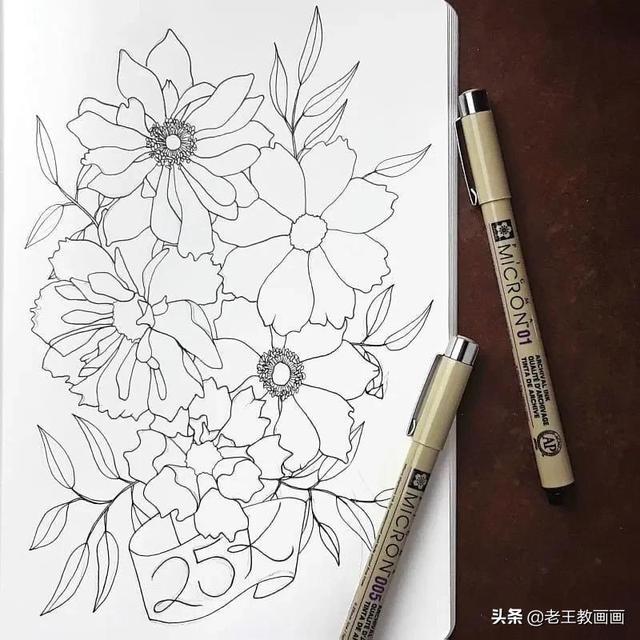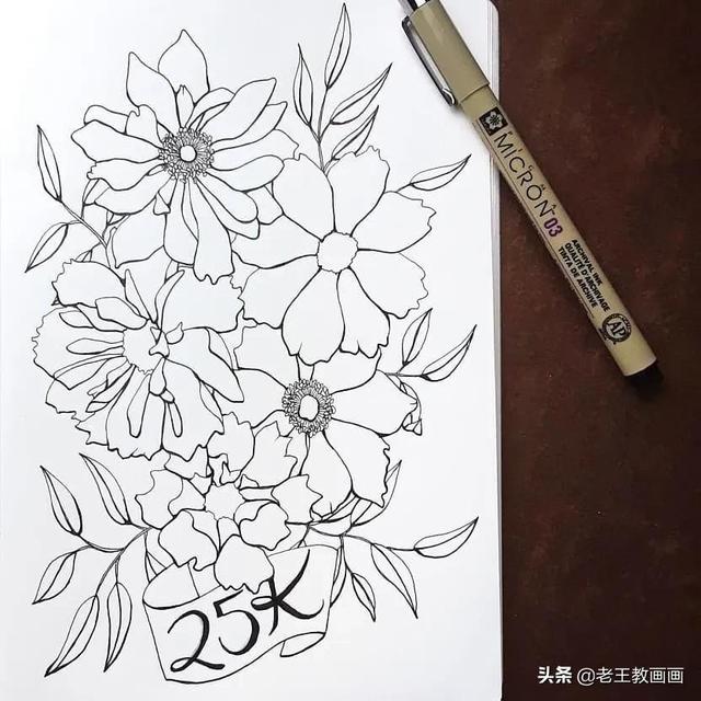 有很多孩子想画涂鸦,下面是一个花卉的线稿教程。勾线稿,用笔涂涂颜色,也挺有趣的。