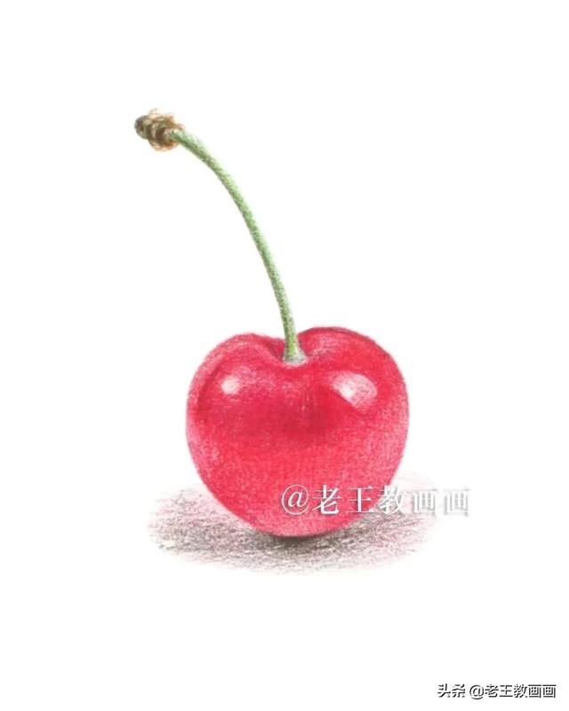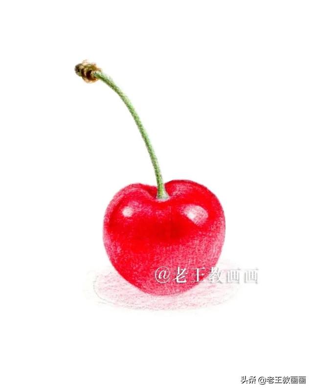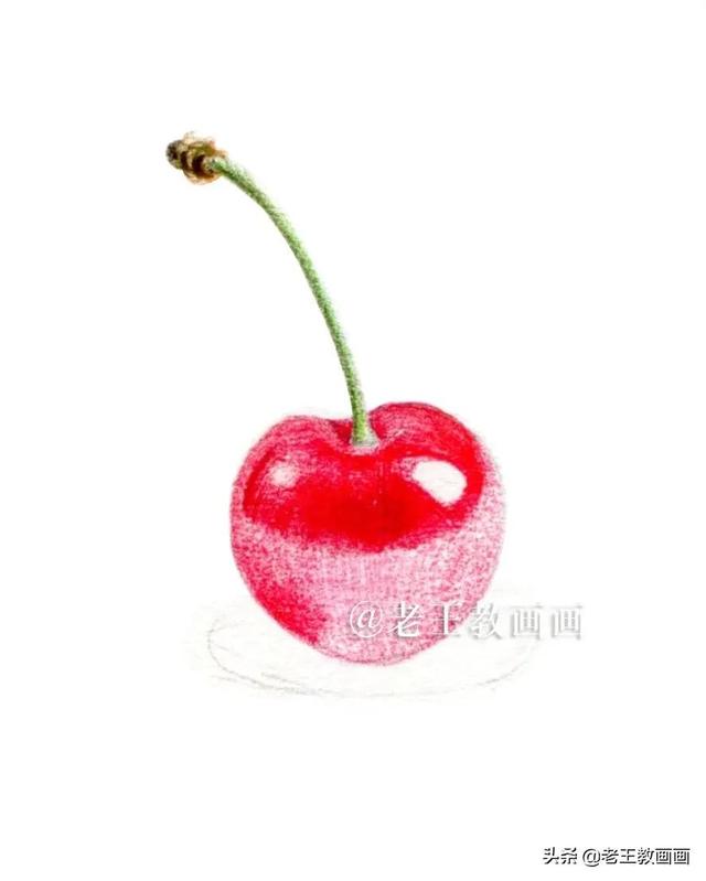 最后分享一个小樱桃的画法,原画是用彩铅画的,孩子也可以用别的工具完成,马克笔,丙烯,水彩笔都可以的,来试试吧。