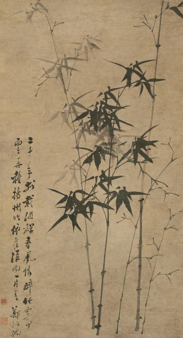 题识:二十年前载酒瓶,春风倚醉竹西亭。而今再种扬州竹,依旧淮南一片青。郑板桥。