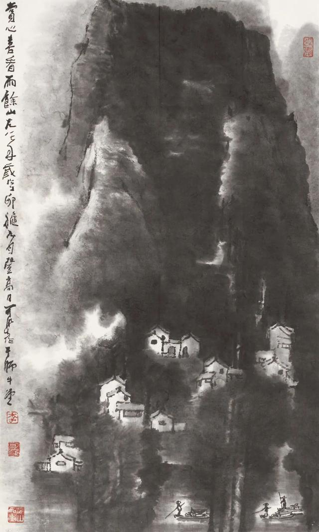李可染《赏心喜看雨余山》 1987年