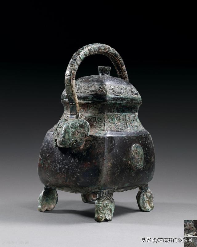 2:商晚期铜夔凤纹四足提梁卣,尺寸:高27厘米,估价:RMB 2,600,000 ~ 3,600,000,成交价: RMB 3,220,000