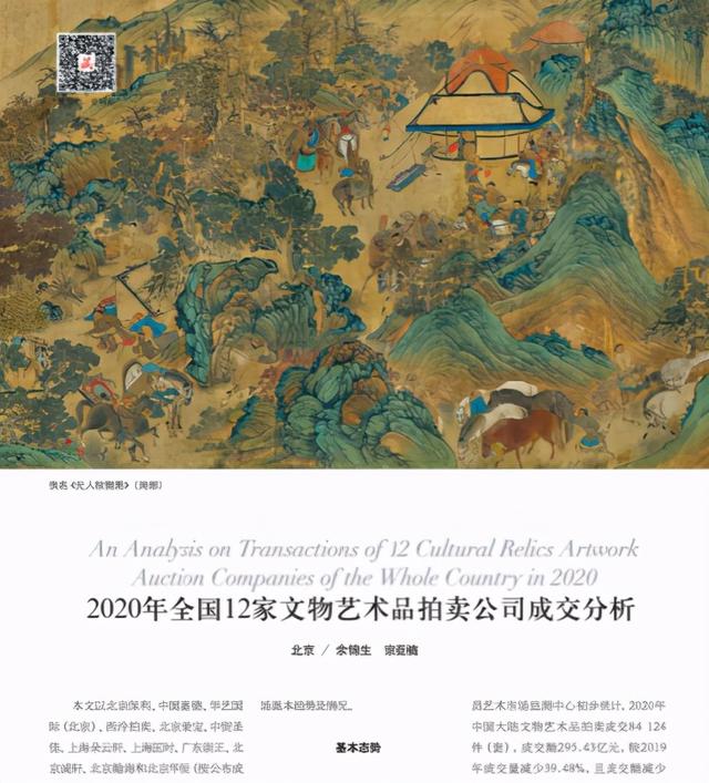 本文以2020年全国12家文物艺术品拍卖公司为样本,通过对其春秋两季大拍公布数据进行统计分析,以反映2020年文物艺术品市场的基本趋势和情况。