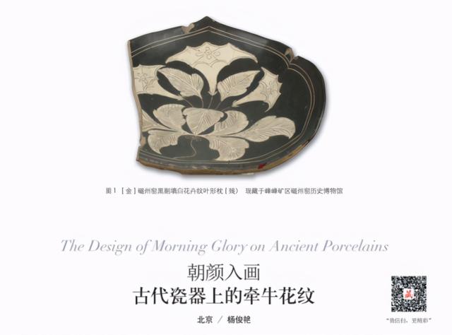 朝颜即牵牛花,属旋花科牵牛属,一年生缠绕草本。这一种植物的花酷似喇叭状,因此有些地方叫它做喇叭花。夏秋开花,其品种很多,花的颜色有蓝、绯红、桃红、紫等,亦有混色的,花瓣边缘的变化较多,是常见的观赏植物,自古以来便为人称颂,早在金代,瓷器上便出现了此类花纹。