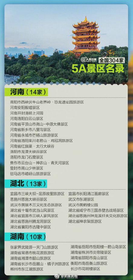 【转发收藏!304家5A景区全名单】端午机票价格跌三成 打算好去哪玩了吗?截至目前,全国共有304家5A景区。数数看,你去过多少个了?转发收藏这份5A景区全名单@ 小伙伴一起去打卡吧! (来源:人民日报)