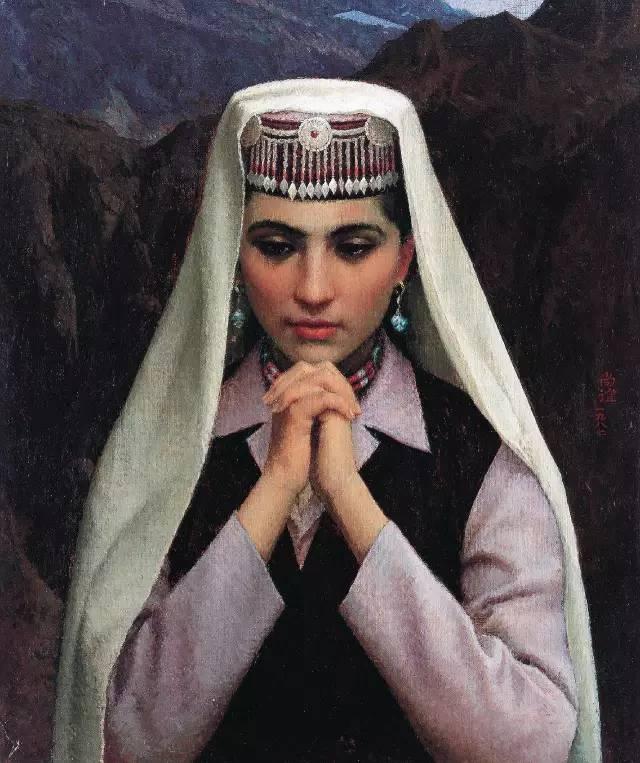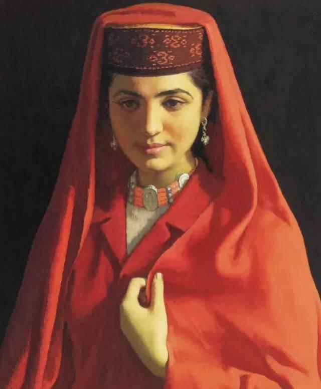 画家笔下的新娘虽然低眉浅笑,但她对于幸福生活的向往和少数民族热情奔放的性格特点在画家笔下体现的淋漓尽致、呼之欲出。