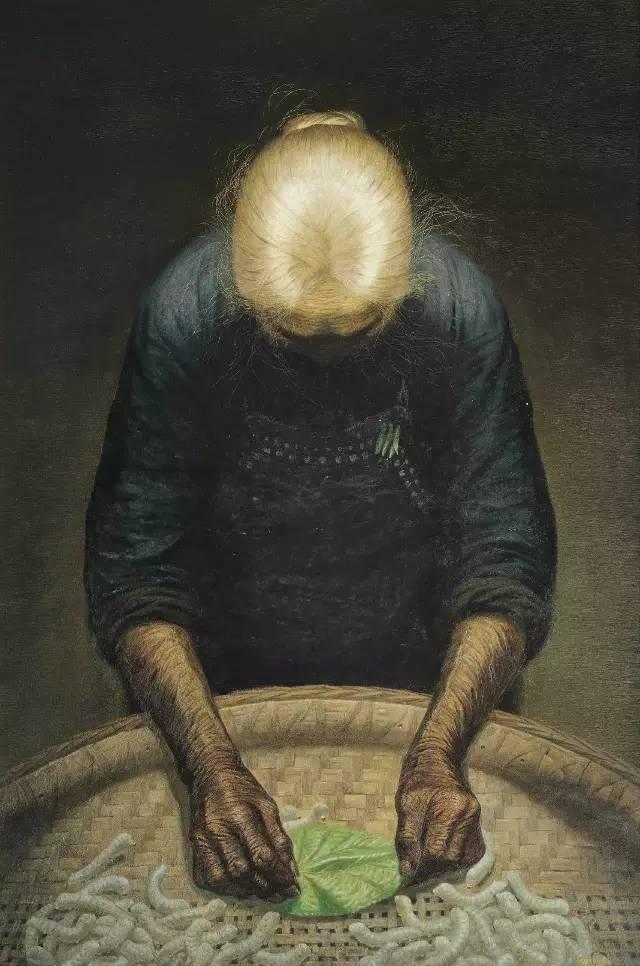 据了解,最早的一幅1980年版的《春蚕》在香港佳士得秋拍被刘益谦以3882.84万元人民币购得,创下当时重庆油画拍卖最高纪录。1983年,罗中立画了另外两幅几乎一模一样的《春蚕》。