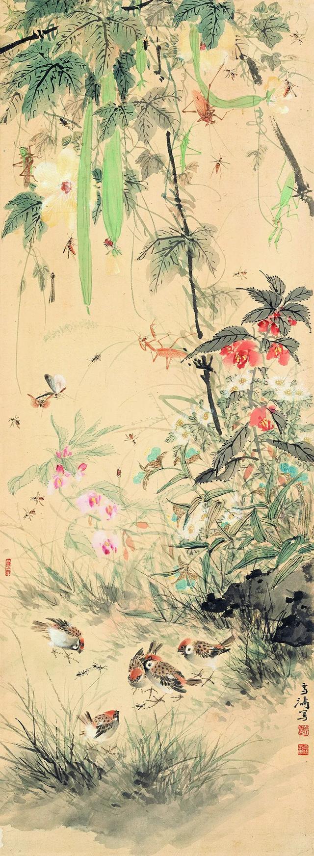 王雪涛《群雀百虫图》