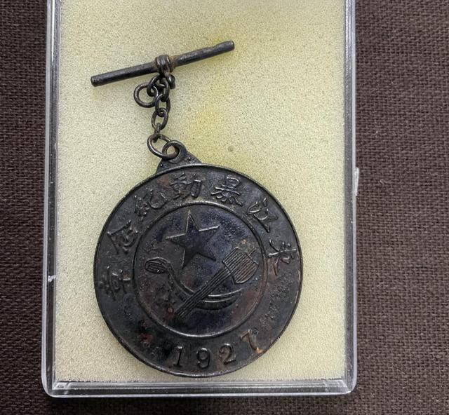 最珍贵的一件文物可能是东江暴动纪念章,“你看这枚纪念章背面还有遗留的铁锈泥和数字编号。”据介绍,东江暴动是1927年4月下旬,东江地区共产党人根据上级指示,发动工农群众反抗国民党反动派的武装暴动。