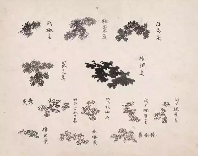 陆俨少在绘制山水画课徒稿时,不仅告诉大家要根据客观对象创作,还细心地为大家区分了哪一种皴法对应了哪些地形、地貌,甚至还为大家标注出都有哪些前辈大师偏爱这些技法,让大家在学习的过程中能够感同身受,融汇古今。